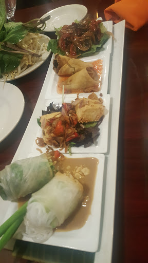 My husband and I love Thai food. So, when he came across this restaurant, he knew we had to try it out. We were super hungry when we got there so we ordered a variety of things. Everything we ordered was delicious. You definitely have to try the escargot! Simply amazing. The duck salad was great. The dressing was perfect - in taste and quantity. I had the crab cakes - not a shell to be found & the sauce complimented them nicely. The portions are perfect too! The ambiance was wonderful. The restaurant is nicely decorated and clean. The service was impeccable! Our servers were awesome - very personable and very helpful. They steered us in the right direction every time. I highly recommend coming here. I know well definitely be going back!