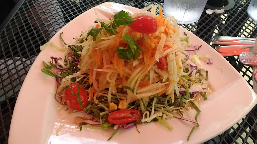 I was really looking forward to eating here after reading the reviews, but it didnt live up to my expectations. I have eaten a lot of Thai food and while it wasnt bad, it wasnt anything to write home about. The location is nice and the overall ambiance was great for my wife and I to get away from the kids for awhile, but the food wasnt what I was hoping for. The soup wasnt very spicy, the Laab wasnt very flavorful, and my wifes Pad Thai had a strong vinegar taste to it. Portions were also small for what you pay. Presentation was nice. Service was sort of slow. Overall not a terrible experience, but not what I was hoping for.