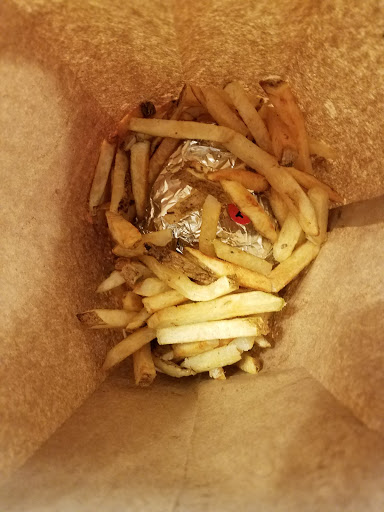 Great burgers and fries! I love that the fries still have skin on them and that they are a thicker cut. Bonus points for offering them Cajun style which is my favorite. Dont let the name "little burger" fool you, theres nothing little about it. Its a regular sized burger and I never need anything larger. Same thing with the fries, the smallest size can easily be split by 2 hungry people. My boyfriend and I usually order a little burger each and split a small fry and are always full, more often than not we dont even finish the fries. Would have rated 5 stars but I dislike having to purchase each item separately since they dont offer combos. $20 for 2 small burgers, 1 small fry, and 2 fountain drinks. That would be a fine price if they upped the presentation but you dont even get a tray when eating in. Burgers are wrapped in foil and given to you in a paper bag.