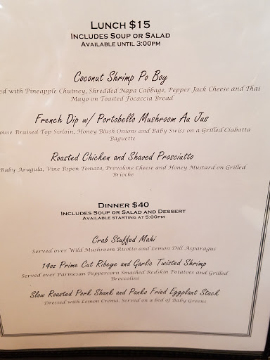 Although the food was okay, the service was slowly pathetic. This is my first time for dinner, but the times I have had lunch, service is the same. The worst part tonight is that they were ill prepared for Restaurant week and ran out of 1 of 4 desserts offered, the creme brulee. When you pay for prix fix, you expect items to be available. The complaints from staff about being so busy all day, great! because now you are here to serve me and I am paying the same for your tired attitude. Also, when making reservation, or on website, or in anything published for Restaurant Week, never was there a mention of limited menu. So every patron was an automatic fee, regardless if children or light eaters were present. The dirty dishes left surrounding the dining room also was not appetizing. For the money comparison, The Left Bank is the only place to go. Atmosphere? No excitement there either. Other patrons are all mumbling the same about service.....