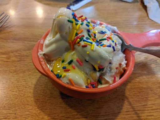 I am very unhappy with my experience today! First off there prices have gone up yet again. Almost $12 for breakfast for just one person! Second off they took the one thing I come here for off the menu. One guy...Im assuming the manager did make some for me...after having another employee complain about making it. I know I came for breakfast but I decided to get some ice cream. That came out wrong too. Their swirl came out 90%