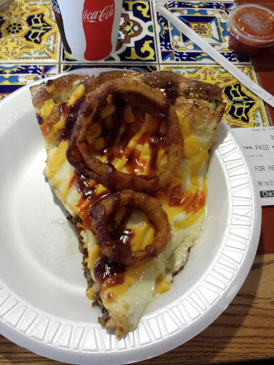 Very good pizza here. Love their lunch specials - can get a slice of stuffed pizza, with sauce & a soda for $5 or so. Weve ordered their regular, basic pizza (sausage, pepperoni, cheese, etc...), as well as salads, and have never been disappointed. And their stuffed pizza slices are really delicious. Try to get here for lunch at least weekly, but dont always get here. The place itself is nothing to rave about, but they do have good food (pizza, stuffed pizza slices, salads, etc...).