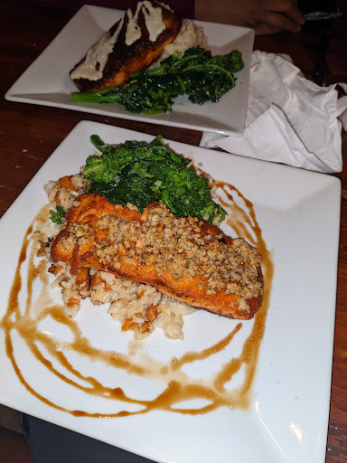 Consistently great service and great food. Nice menu with some creative upscale touches. More than just a local joint. They know how to cook a steak properly. The bar can be a bit loud when they have bands in, and the acts are hit-or-miss.