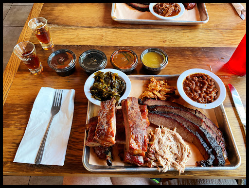 It was ok barbeque, not amazing, but not terrible. From me, that says something. I went there for a take-out lunch during the work day, and treated myself with the 3-meat meal. I got the pork ribs, brisket, hot smoked sausage, potato salad, brisket chili, and corn bread. its a big lunch. I was a little surprised the ribs were baby-backs and not spares. There was nothing on the sign that said that, and I was a little let down because baby-backs are so small. The brisket was tender, but not really juicy and the bark didnt really have any salty or peppery bite to it. The smoked sausage was actually delicious. Great heat, great flavor, and the casing snapped when I bit into it. The sides were forgettable, with the potato salad being really bland and the brisket chili being just a pile of mushy day-old bland shredded brisket with a thin sauce floating around it. The corn bread was decent, but nothing you cant make from a box of Jiffy. All, in all, it was a good meal. Just good, not terrible, not great. The best part was the smoked sausage. Im not sure if Ill be back .. but its on the list of places to consider the next time Im looking for lunch.
