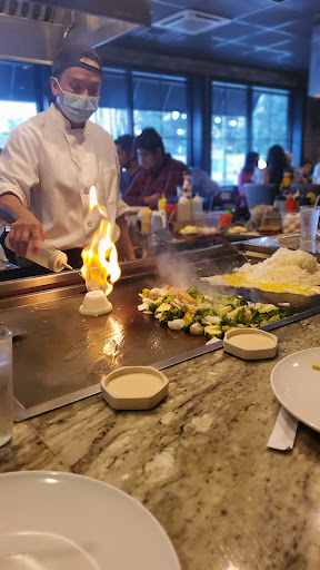 We had reservations for ten people ,yet still had to wait. Soup was bouillion with mushroom slices and chives . Salad was bizarrely big chunks you couldnt fit in your mouth, no knives. Menu was basically surf and turf you could get anywhere, much cheaper. The android who was presented as our chef went through his "routine" absolutely robotically as if practicing for dummies. My son asked "how long have you been doing this?" Android answered "two days" and never interacted again. Mechanical android plopped our food on our plates and left. Our party repeatedly watched the nearby table as their chef kept them squealing in infectious laughter, joking,playing,squirting sake . Was he from another planet? Were we at the wrong restaurant? SAVE YOUR MONEY!!!!!!