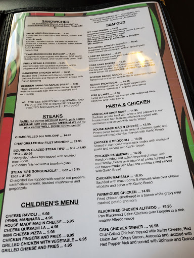 Went to Dinner on a Saturday night, just live a mile away dont know why I havent heard more about it! The staff was friendly and attentive, I wasnt that hungry and it was nice to see they had sandwiches available at night. I had the rib eye sandwich it had a great flavor (the waitress said it is because it was char-grilled & gives it that something extra, I agree) and my wife had the Cajun salmon w/ apricot glaze. I dont care for spicy but she said it was a nice combo of spicy & sweet and extremely fresh. Next time I will make sure I go back with a bigger appetite, there was a lot of tasty sounding pasta dishes Id like to try. I will let you know how that goes, two thumbs up for now!! I will be back and am making a point to let my friends know about it, very comfortable place.