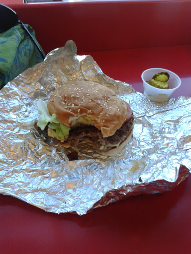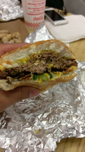 Never had a Five Guys burger before. I dont know what the big rave is but they are ok. Not much taste. A bit on the dry side because it is over cooked for a burger. The fries suck.