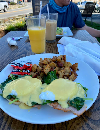 The food was good, staff was friendly, you can eat inside or out. The serve breakfast also. They have a nice little Bar area.