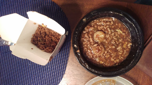I really wouldnt recommend ordering take out from this place. I tried new dragon for dinner tonight because it was rated highly, and the prices are reasonable. I ordered the shrimp with lobster sauce combo pictured above. While the shrimp itself was cooked perfectly, the sauce was overly thickened, with almost a gelatinous consistency. The dish was also filled with an overabundance of overcooked ground pork which made the whole meal taste like I was eating microwaved ground pork mixed with soysauce. The fried rice which came with meal was better, but marginally so. The roasted pork pieces were very dry, and the rice was overly salty. The egg roll was interesting, as it was filled with a dark green vegetable I couldnt identify.. possibly broccoli.. nothing to write home about. Needless to say, I wont be eating here again and would not recommend new dragon to anyone. The staff were nice at the front counter, and they can properly cook shrimp, but since all other aspects of the meal were lacking, Ill take my business elsewhere in the future.