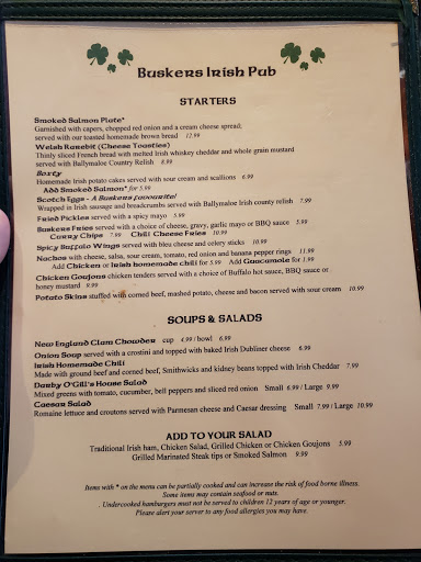 We stopped in last night - a rainy, busy Newport Saturday night with a boat show in town - and it was a delicious experience. We stood in line after walking 8 blocks to get there and the bus girl informed us it would be 45 minutes to an hour for a table for two. Not wanting to walk anymore, we decided to wait. There isnt sitting room, so be aware of that for a wait. The bus girl was there by herself - she had to bus tables and take names for the wait list - and we got to chat with her while waiting. She was so professional and friendly, and I felt wed made the right choice by staying. We were seated not 15 minutes after arriving, despite anticipating an hour wait. Since it was packed, it was very warm inside, almost unbearably so by the bar, but we were put at a small back corner table by open windows that let in some of the cool evening air. Our waiter (nicknamed Pony Boy on our receipt) was attentive, fast, and personable, and the food was delicious. Authentic Irish-style bangers and mash, and a great portion for the price. I had the pumpkin martini with vanilla vodka like the bus girl recommended for dessert, and it was pumpkin pie in a glass! So delicious! If I ever come back to Newport, Ill make sure to stop in again. It would have been worth a much longer wait thanks to the wait staff. Thanks again, Buskers!