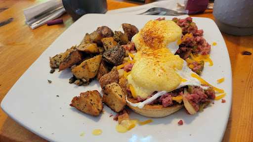 Very nice eclectic corner spot for breakfast or lunch. Decor was very crafty/sheik without being junky. Seating is limited (10-12 tables Id say) so there may not be room during busy periods. It has a menu that reads like it could be featured on Diners, Drive-Ins and Dives", very imaginative and unique. I mix of Portugese and Irish items work their way into many of the dishes. Been here twice so far, once eating breakfast items (served all day) and once lunch. I have to say that both my wife and I much prefer the breakfast items. Although the lunch sandwiches were creative (I had a burger topped with egg, gorgonzola, hollandaise) they did not strike the cord that the breakfast plates did. Looking at the other tables, about 80% had breakfast items for lunch if that tells you anything about what this place is known for. I intend to come to this place every time I make the trip to Newport and would have no second thoughts about bringing friends and family. The size may be small and the name misleading, but rest assured this really is a hidden jem.