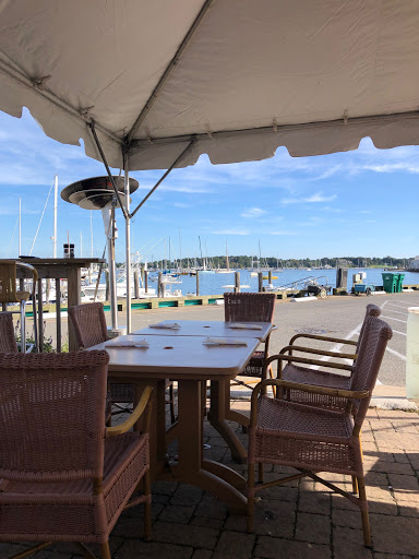 If you want to escape that normal feeling of Newport and believe me its a great feeling but if you want a new perspective just hop on over to this place. Its chill. Decent food. Great salmon sammy. Outdoor seating along the harbor that very few people frequent. However the night sky illuminates sail and motorboats. All glistens in the water. The sunsets are gorgeous too because it is on the western side so you get more sun. Im not sure if theyre open in the winter but if they are definitely go over there in The afternoon for a late lunch or early dinner to be sure you get as much sun as you can!