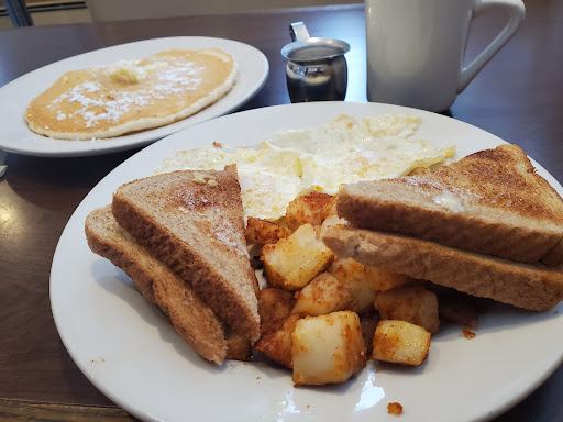 Got the Mexican Omlette which was very good. Luinguica sausage, pepper, onions, cheese. Real good side of potatoes,nice and crispy. Got a side of a pumpkin pancake. Had to send the pancake back because it wasnt cooked through. Second one came and it looked prettier than it tasted. Didnt get a pumpkin taste at all. Almost. Like a cinnamon pancake but still lackluster. I still think the second one was a bit under cooked. Cheap prices.