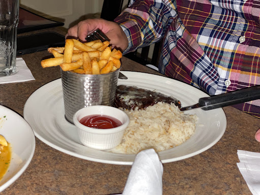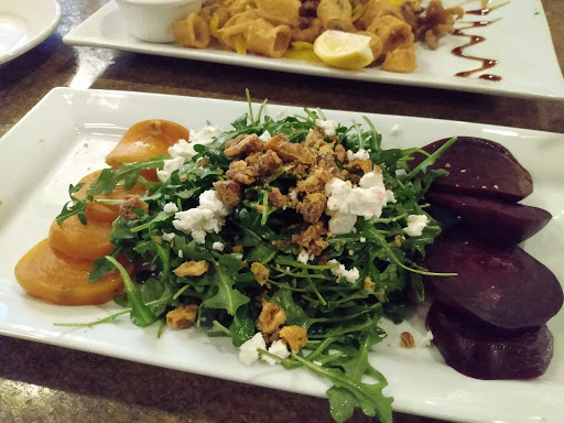 Wonderful food: the portabella pizza cant be beat. Chicken Tuscany was delicious and a generous enough portion to take some home. Matchstick vegetables were flavorful and perfectly cooked. Stuffed pepper app was a fine entree. Even the bread was good. And the waitress was pleasant and efficient.