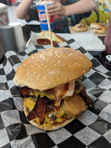 not a bad place nice atmosphere. they have a few arcade games too. the food is decent. the photo is a double burger with blue chz, bacon, lto, jalapenos, and a fried egg. it was alright. i also had a cold refreshing draft beer. service was good. weve been here a few times and will return again.
