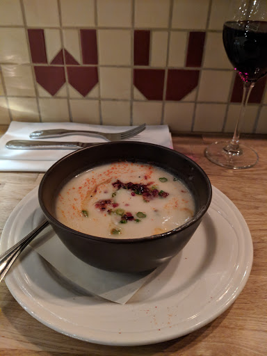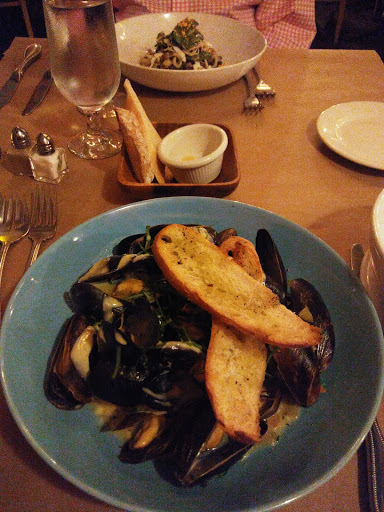 I dined at Chez Pascal on date last week. New to Rhode Island and not living in Providence, a few friends recommend the restaurant for it combination of French cooking and locally-sourced foods. Our waiter (or maybe it was the sommelier) provided helpful suggestions for a wine paring; we finally settled on a Swiss Pinot that was remarkably well described by the sommelier. We started with both the charcuterie and the three cheese plate. Significantly larger than the three cheese plate, the charcuterie was quite filling and, combined with the cheese, almost filled the two of us up. The meats were satisfyingly varied and had unique garnishes that nicely balanced the proteins. Able to pick from a larger collection of cheese with recommendations from our waiter, we sampled locally produced cheese from sheep, goat, and cows milk; all were good. For the main course, I had the roasted half chicken which was appetizing but the combination of the diced, roasted roots and seared rice cake made the dish a challenge to finish. The chickens skin was crisp and the meat was moist but the poached garlic sauce was a little too subtle. My date had the marinated skirt steak that had been sauteed with wilted greens in a red wine sauce topped with a generous portion of horseradish. I preferred the skirt steak. We were so full from the two course that we passed on dessert. Overall, the meal was quite good.