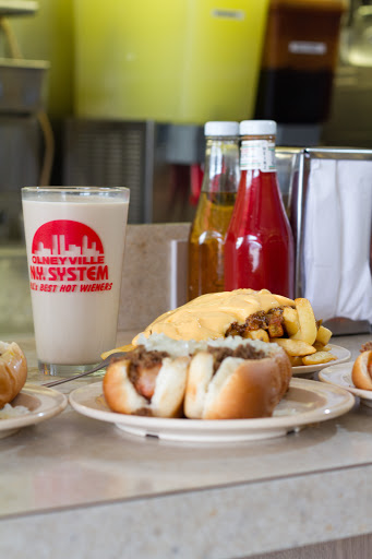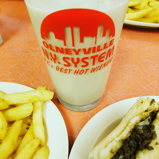 Wiener fans know that Rhode Island is the home of genuine New York system wieners. And you cant get more authentic than eating at Olneyville NY System. They do everything right from plump, juicy wieners covered in meat sauce to hot French fries crispy on the outside and smooth an creamy on the inside. They take care of all the little touches too such as having vinegar for your fries and celery salt for the wieners. Stop by and give it a try. Be sure to ask for "two all the way with coffee milk". Youll enjoy a taste of Rhodys finest.