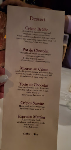 Its great to have a place get classic old school french cooking and I hope they are here for 40 more years. The space is amazing and the history is undeniable. But its time for a refresh. Its....almost.....there, but not quite. The extensive menu is prepared in a one chef kitchen. If they did half as many dishes Im positive they could give them the attention they deserve. They are living in their history and they are not keeping up with the explosion of high quality food that is all around them.