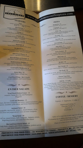 As a New Yorker, Im pretty picky with my pizza. That said, Providence Coal Fired Pizza is a really great place. The restaurant itself looks good and has a nice, casual & modern atmosphere. The staff was very nice and friendly. As for the pizza itself, it was very good. The crust wasnt too thick as tends to be the case with a lot of these places and the ingredients all seemed reasonably fresh and of good quality. Theyre oddly shaped (a weird oval looking thing with square slices), but that doesnt really detract from anything. While they had crushed red pepper and parmesan cheese available, they didnt have any oregano or garlic powder, which was unfortunate. Surprisingly, the real star of the meal was their coal fired wings. Seasoned with salt and pepper, heaped with fried onions, then cooked in the same coal fired ovens as the pizza, these wings are an absolute delight. If we werent so full after our meal, we would have gotten another order! These are a cant miss item here. Speaking of cant miss items, try the butterscotch pudding for dessert. Its indescribably amazing!