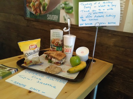 I go to this Tropical Smoothie Cafe quite often. Employees are friendly, the place is always clean and the product is great. What ever you buy, you can count on good service and quality.