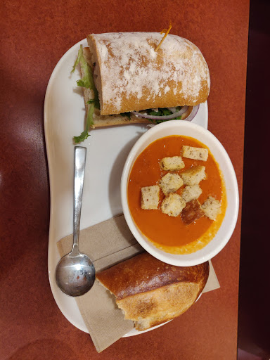 Good Panera location with outdoor seating, too. Free wifi makes it a nice place. Parking can be difficult on busy days, but a short walk is good for you, too!