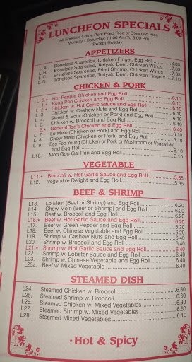 they have wonderful food. its delicious. the lunch menu has a good deal you get an egg roll and pork fried rice. its at a reasonable price. they also have combo deals. i love their food. its awesome.
