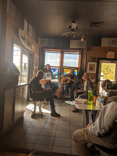 Laid back coffee shop with eclectic, rustic decor. There is a spacious back deck open in the summer that overlooks a scenic marina. The food menu is limited compared to a full service restaurant but extensive as coffee shops go (including lunch sandwiches). The coffee itself is nothing to write home about but certainly better than average and worth the trip when coupled with the ambiance.