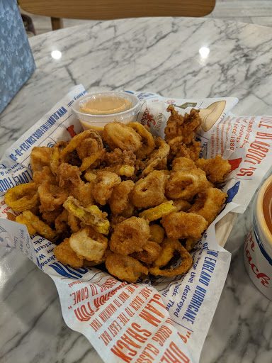 FINALLY - I was able to visit this seafood gem. Theres the shack across the street which usually closes for the season mid September. But this market and restaurant stays open year round with limited hours. We were able to get 3 clam cake with a cup of chowder for 5.99 - which is a deal since a cup of chowder is 4.50. I understand that they are the chowder supplier for numerous restaurants in the area. Their chowder came out steaming hot - high grades for it being hot. It wasnt too thin or thick and was loaded with clams. But for me their "bargain corner" was a hit. You can get frozen blocks of a variety of chowders for cheap - cheap- cheap. They even had angus beef chowder frozen and ready to go. My new fun favorite spot for on the go seafood.