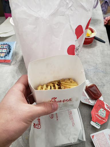 We enjoy visiting this chick-fil-a but today hubby wanted an ice cream. He got a vanilla ice cream cone ($1.46) it looked like a normal soft serve you would get anywhere, but as he began to eat it, it became clear, he was ripped off! They dispense the ice cream in a way that makes the ENTIRE inside hollow, so you are actually getting MUCH less ice cream than it looks like. A MAJOR Rip off and the ice cream isnt very good anyway.