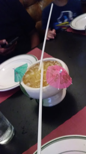 Good service, good food, scorpion bowl and volcano drinks are really good an strong .