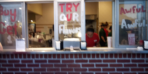 Started out with gross, food encrusted silverware. Not a good sign. Had to ask twice for new ones. Then, two of the four people in our group ordered Awful Awfuls to drink with their meals. We received the other sodas, appetizers and our meals, but still no Awful Awfuls. Our server was young, and had a couple other tables, so we tried to give her the benefit of the doubt. However, when it got to the point where we were almost done with our meals and we still didnt have the drinks, I went up to the counter and asked about them, and was told she was just starting to make them. I explained that we were almost done with our meals, and that they had wanted their drinks WITH dinner and not after. The waitress said "oh you can take them home with you." I explained that wasnt the point, and that they should have been made and brought out with everything else. She just stared at me blankly, like a deer in the headlights. While waiting for the manager to make our order, we observed another table that our waitress was helping also becoming increasingly frustrated as they too were made to wait for their food, and also for someone to come and cash out their check. I understand and appreciate that wait staff work hard and are often busy, but dont unapologetically subject your customers to horrible service, without so much as a word of explanation or apology. In closing, my opinion is that the ice cream is great, but the food and service leave A LOT to be desired.