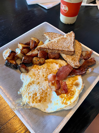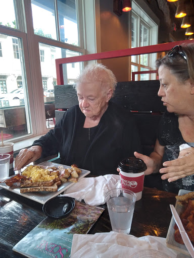 Let me preface by saying Im a coffee nerd. Im only satisfied when I can get perfectly extracted espressos and velvety milk cream marks on my typical macchiato order. Anyways, i was staying in Bluffton for a few days and was happy to find a non-Starbucks coffee establishment. Friendly staff. Place is cute. Waitresses are even more cute. One looks just like a young Eva Green. I was kinda smitten. But another gal, a mature blonde, wears the most bizarre make-up. Totally caked on. Unnecessary because looks like shed be attractive without the layers of ridiculous make-up. The coffee? Pretty good. But not outstanding. Ordered my usual macchiatos during my visits. Score them B or B+ for decent extraction but cream of the milk was a little over-foamed. Like I said...Im a coffee nerd with ridiculously high standards. On my last visit I ordered a slice of their chocolate cake. It was really tasty. My advice: definitely come here instead of a lousy Starbucks or Dunkin Donuts for coffee. Sit down. Enjoy the friendly staff. And enjoy the nice view from their cute corner location.