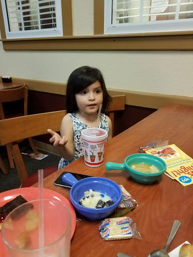 If I had seen when I walked in what I had seen after I ate I would have turned around and left. The food was good. The waitress was nice. I overlooked the fact that one of the forks still had crude on it because that happens sometimes even in clean places. After I was finished eating I went to the bathroom. On my way I saw 2 roaches crawling up the wall. When I got to the bathroom it was filthy and there was no toilet paper in the stall I used ( the only one I found without something on the seat). Even the sinks were trashed with soap and stuff. I talked to a manger , think she was just a shift leader. She was apologetic but there was nothing she could do after we ate. She said they dont have a roach problem "per se" but one or two could get in by people coming in and out. I asked what the sanitation grade was and she said a B. I have worked in restaurants before and you have to be pretty nasty to get a B. Guess I will be checking the sanitation grade before eating out from now on.