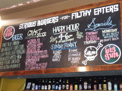 Just had some awesome burgers at big gun burger shop. We went with our kids at 4 right when they opened. Awesome happy hour from 4-6 has half priced burgers. I had the towering inferno which lived up to the name. Rest had the house burger. Lots of debate if it was the best burgers weve ever had but its in the running. Loose atmosphere. Definitely more bar than restaurant but at 4-5 totally fine for a family with kids. Later evening probably not. Good beer and liquor selection. Fries WERE the best regular fries. No debate there.