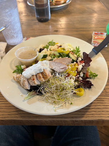 Excellent. I had the Zorba the Greek salad with chicken. Chicken was very tender and moist. Sometimes in salads chicken can be over cooked and tough. Dressing was a oil and vinegar with feta and was very tasty. My husband had Pig and Fig. He said the addition of the crunchy apple slices in the sandwich was very different and quite delicious. To drink I had a blackberry tea lemonade which was very refreshing and tart. We also had a side broccoli salad which came with the sandwich. It had golden raisins, nuts and a very good dressing which was not overly sweet. Although warmish and not air conditioned, a couple of fans kept the dining area acceptable. The service was pleasant and we did not wait too long. The place was packed and had a line outside waiting. The recommendation came from a woman who works at one of the houses we toured. She says they order food from them at least a few times a week.. I can understand why that is so.