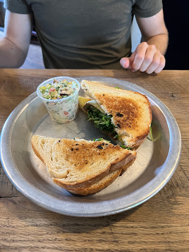 Located downtown so parking can be hard to find, we lucked out and found a metered spot right in front of the restaurant. We were greeted when we entered and seated promptly. Its a pretty cool unique downtownesqe type place, kind of small but thats to be expected. They have a lot of options for vegetarians/vegans which was nice. I ordered the philly and potato salad and it was delicious. The potato salad had bacon crumbles on top of it, it also has the skins in it (which I like) so keep that in mind if you dont like potato skins. The philly had a good taste to it, wasnt too dry and the bread was good. My wife had the vegetarian not-chicken sandwich and macaroni salad and she loved it. She let me have a bite and it had the same texture and taste of a processed chicken patty, but it was seasoned and cooked and topped perfectly. The macaroni salad was al dente which was a nice surprise since a lot of places overcook the noodles. Would recommend this place, and will definitely be going again.