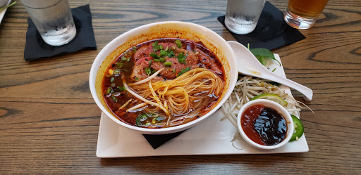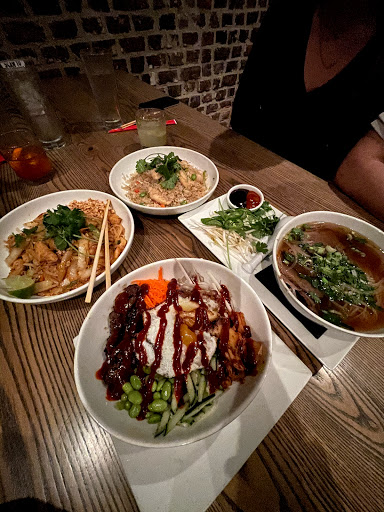 Restaurant was difficult to find because of size. Restaurant is narrow/small. Upper floor has tables. Lower floor is all bar style seating. Its dark and kind of tight all around. Overall, the restaurant was clean. Single bathroom, but not too bad. Food price is more on the high side, a bowl of Pho is $12. However, dont be fool, its a small portion compared to other Vietnamese restaurants. The Pho was okay. Its not your typical Vietnamese style Pho, I would say its Americanized Pho. The broth is plain. Actually, it didnt taste anything like the Pho Im accustomed to. If you never had good Pho before, you wont know what Im talking about. Not for family. Ideal for a girls/guys night out. Its a bar that serves Vietnamese foods. Staff was friendly. Service was quick.