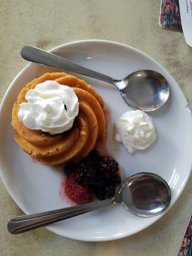 Pleasant greeting and good service with a laid back Caribbean feel The recommendations (instant vacation and voodoo cake) were very good. A nice end to a long touristy day!