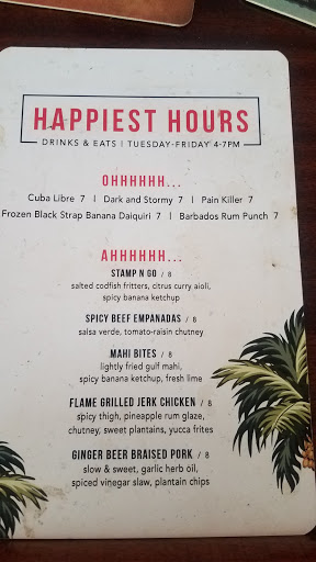 Rum drinks off the charts. They serve a true painkiller. Amazing. The other rum drinks were great. Stay with rum. The food was a different story. The tropical salad was wonderful as well as the coconut rice the yucca frites and the fried plantains. However the beef patties no so much. The curry ehh not so much, all the veggies werent fully cooked. There were maybe four pieces of chicken. The portions were small for the price. I would go back for a drink not to eat. You can find more traditional Caribbean food elsewhere in Charleston.