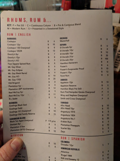 Incredible food and the bar tenders are awesome. Just about every RUM on the shelf. Food: The tipsy chicken is the real deal...the perfect amount of heat, tender and combined with a tasty fruit chutney mix. For dessert, the bread pudding is a must. Leaving fat and happy...