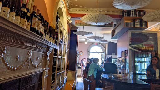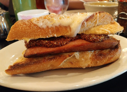 Very low-key. Coffee out of French press (of course). Cramped interior filled with art, quirky lanterns, and several large farm tables intended for sharing among the customers. I dropped by for coffee and a Turkey-and-Brie Croissant with French Onion Soup. The food was decent and reasonably-priced, didnt blow up my taste buds with joy or anything, but it seems like a really nice place to hang out, read, and nurse a cup of coffee for hours and hours, with no one to hurry you along, a la traditional European cafes.