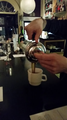 Such a neat little place, and no tipping allowed! They have a daily special you can get that comes with a drink (wine included) or just order off the menu. When we went here they had an awesome roasted beef that tasted like it was cooking for days in some red wine, served with some great bread and a veg. Oh and make sure to get some french pressed coffee, brewed on demand. I wish we had a place like this in Tampa, wed go here all the time if it was near us! Very affordable, great food, all in a casual French bar/cafe experience. Loved it!