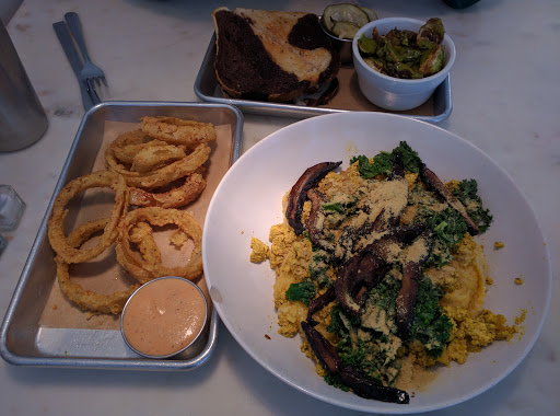 Cozy, homey, DELICIOUS little spot in the heart of Historic Charleston where vegans, vegetarians, and omnivores can enjoy a meal together. Their portions are very fair for what they charge -- must try the cinnamon pancakes and the breakfast burrito (that mango guac is the bomb!).Stumptown beans make for a solid cup of coffee and one can always appreciate free non-dairy creamers.
