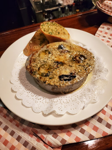 Rip off. Went for restaurant week. My chopped Caesar salad was abysmal. Whatever happened to anchovies in a nice Caesar salad? I found little bits of some processed meat instead. My friend had the crab soup, which was okay. I ordered my steak medium rare and it came out medium. What good is prime beef if you cant cook it right? The waiter recommended the port wine reduction sauce, which i tried with a couple of bites of steak and then left alone (add another $5 to the tab). The banana bread pudding was good for dessert, but nothing that couldnt be had for a cheaper price elsewhere. It took about 15 minutes to settle the bill after we finished dessert. This rubbed me a little raw after seeing the mandatory 20% gratuity included in my bill, which isnt obvious on the credit card signature slip. I could do without having my table crumbed if you would bother to pick up my credit card. It looked like our waiter had more tables than he should have, probably because of restaurant week. Im guessing they use restaurant week as an excuse for poor service, but Ill never know for sure because Im not going back. Bottom lime: From the over-sized menus to the overpriced drinks, this place is pretentious, lame, and overpriced. Skip it and walk to one of the many great places down the street.