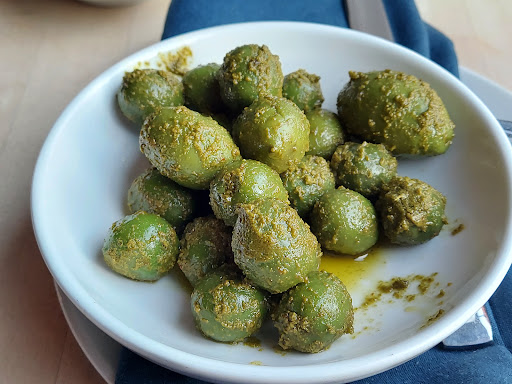 What a great spot for a meal in Charleston! After trying many of the local spots for oysters, shrimp and southern fare, we wanted something a little different. Indaco was perfect! On the recommendation from our server, Larry, we ordered a great Super Tuscan and slowly made our way through the menu. The Polpette meatballs were outstanding as was the Insalata with pickled banana peppers. The Brussels Sprouts pizza was a show stopper though. You have to try it. The honey was the perfect touch that brought all of the flavors together. Thanks for making our last night in Charleston extra special!