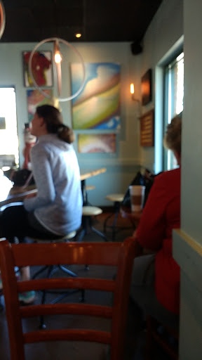 A very "Cheers"-esque atmosphere. A great blend of regulars and new customers. Quaint and quality atmosphere, with friendly and knowledgeable baristas. Enjoy the coffee, sweet treats, community tables, free wifi, plenty of parking, or look up and soak in the oppurtunity to meet people from around the area!
