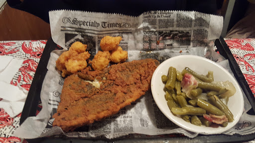 To start, the servers speak in monotone and are slow, very slow. The menus were formatted oddly. I order a Pepsi to drink. I am brought a Diet Pepsi instead, so I return it to get a Pepsi. Just that moment, the machine breaks. They give me a iced but not cold canned Pepsi which isnthe ideal but not good. My first two dinner choices are not avaliable due to them being out of shark and alligator. My first thought is why didnthe they say they were out? I first get a bowl of the she crab soup which was full of sherry and had almost nothing that resembled crab! For my main dish, I end up ordering "The Peacemaker" which is an oyster sandwich. I get it about five minutes after the rest of my partys food. The sandwich was stuffed! Dont get me wrong, I like a lot of food but if I cant even close my sandwich to put it in my mouth, then it makes no sense. The taste was sub-par at best and very greasy. Overall dont go if you want to have a good, enjoyable dinner. Good luck, youll need it!