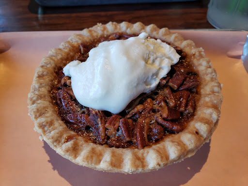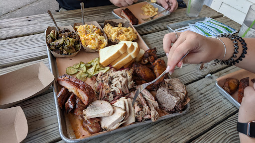 Love this place! The smoked wings are amazing and the Brunswick stew is some of the best Ive ever had. As far as deserts, Ive tried the bourbon pecan pie with marshmallow topping and the banana pudding. Both were super sweet so prepare yourself, but still very good. In terms of the meat, I like the pork belly. Dont care for the sausage (not a huge sausage fan to begin with) and the pulled pork doesnt quite have that smokey flavor that I like. As far as parking...be forewarned, parking sucks. There might be 6 parking spaces TOTAL in front of the restaurant (including handicapped) and I believe there are three parallel parking spaces on the side of the building. Most times, I dont even bother with that lot. There is a grocery store right next door with ample parking within pretty close proximity. Overall, definitely a favorite!