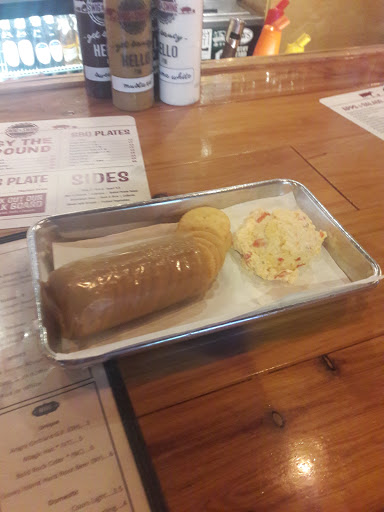 The food was really good, my husband and I shared the 3 meat platter with chicken, brisket, and pork belly, the chicken is amazing! It just completely falls away from the bone, super juicy with great flavor! The brisket was super tender and had great flavor as well. Im not a big fat person so I passed on the belly but my husband loved it! We also got a side of the pulled pork, it was nice and lean, very tender and the flavor was spot on. Our waitress Belinda was great, she knew the menu and convinced us to try the chicken, which again, was great. She was very friendly and funny and was on top of our table when it came to drinks and stuff. Would definitely recommend eating here!