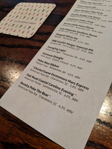 Great pub!! They had really great cheep beer specials, and they also had fancy local brews on tap if you are interested in trying some local stuff. We read that they had the best Fish & Chips in Charleston, so we both ordered the Fish & Chips. Best Fish & Chips Ive ever had. Hot, crispy, flaky, tender fish! Hot and delicious fries, yummy coleslaw, and great tartar sauce. The bartenders were friendly and fast. It was a great experience all the way around!!